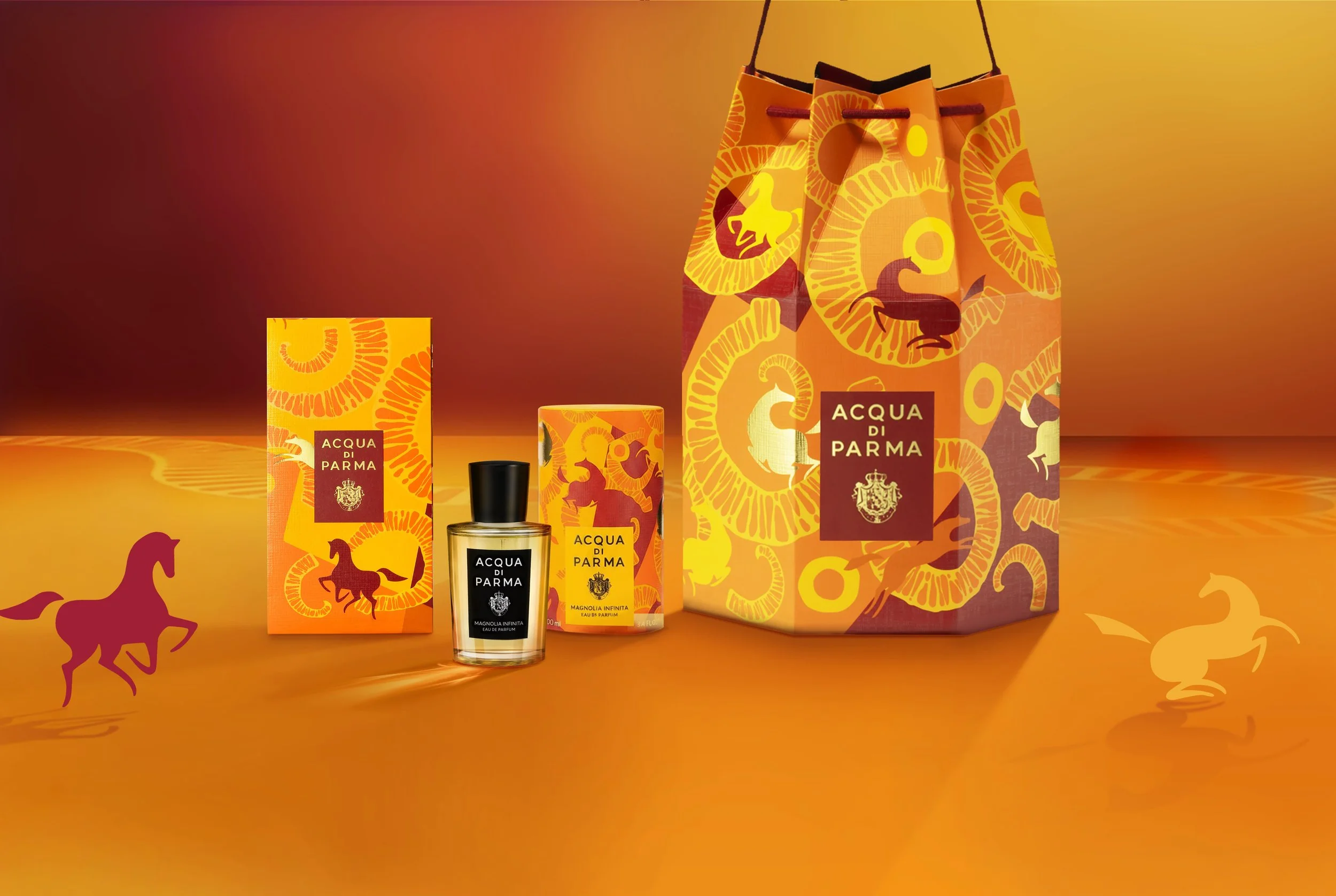 To celebrate the Year of the Horse, I collaborated with Acqua di Parma on their limited-edition New Year fragrance design. Diverging from my previous style—which was more concrete and centered on women and nature—this project embraces a more abstract, graphic, and pattern-driven aesthetic. It was a refreshing creative experience and an absolute joy to work on.